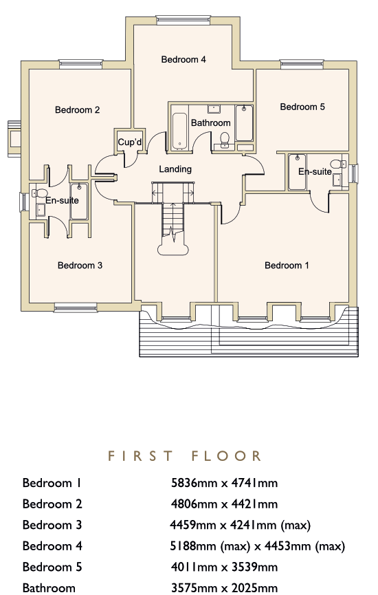 The spacious galleried landing takes you to the large family bathroom and five generous double bedrooms – three with an ensuite. Beautiful large windows and plenty of room for storage make this home truly wonderful.